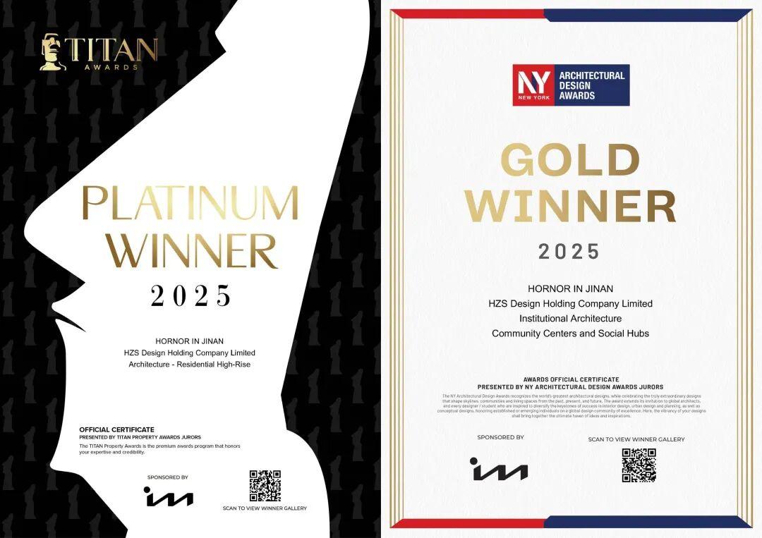 美国TITAN地产奖素有"地产界奥斯卡"之称,纽约建筑设计奖也是备受瞩目的全球九大城市设计奖之一,在国际上含金量极高。所有获奖作品皆为全球各地经过严格遴选的卓越地产设计作品,被视为全球地产行业至高设计。